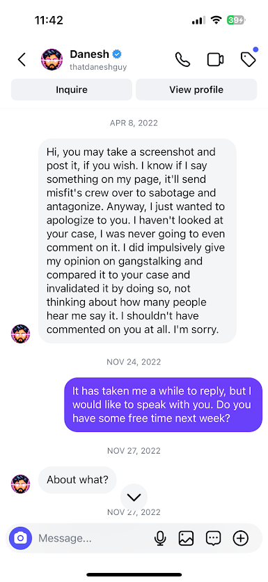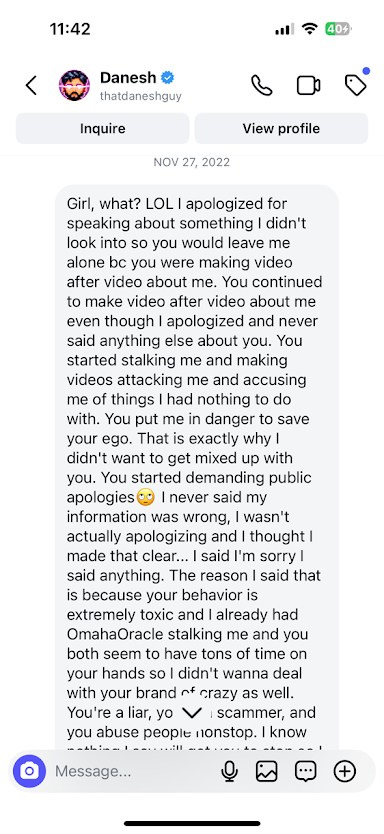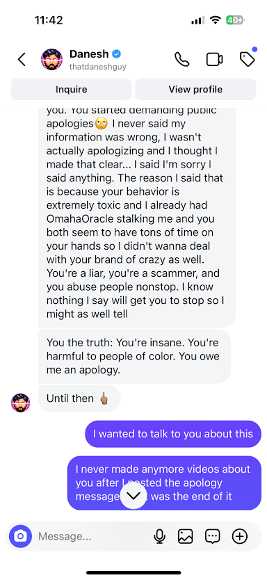 But that mea culpa was fleeting. When Briscoe tried to set the record straight publicly, Danesh turned on her again – doubling down with insults. He branded Coco Briscoe as “insane,” a “liar,” and “toxic” in front of his massive audience.